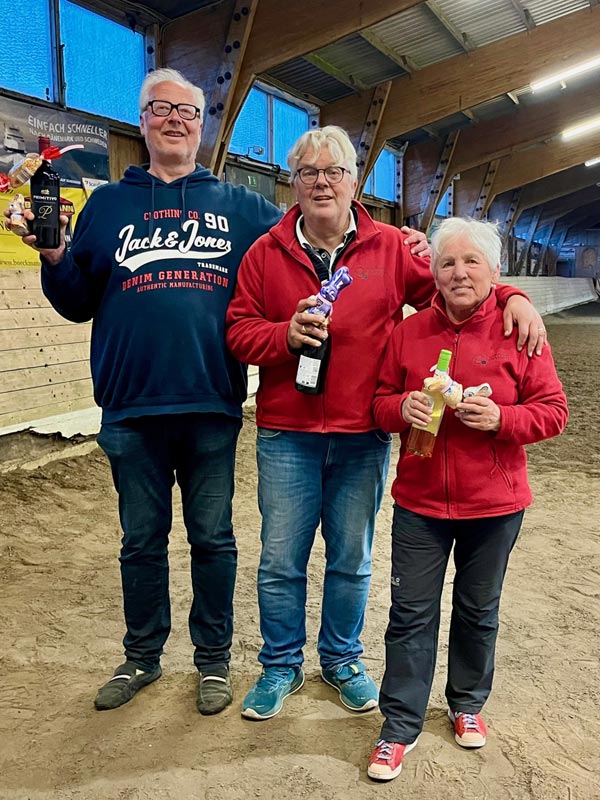 Es gewannen 1.Platz Franky, 2.Platz Peter H. 3. Platz Ulla. Die Rangliste in der Halle gewannen 1. Platz Hajo, 2.Platz Ingo W., 3. Platz Sabine. Herzlichen Glückwunsch .